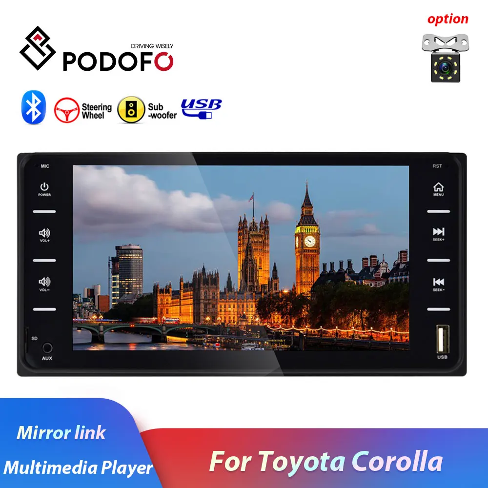 Podofo 2 din 7" Car Radio Android/IOS MirrorLink Bluetooth USB MP5 Multimedia Player For Toyota Cor