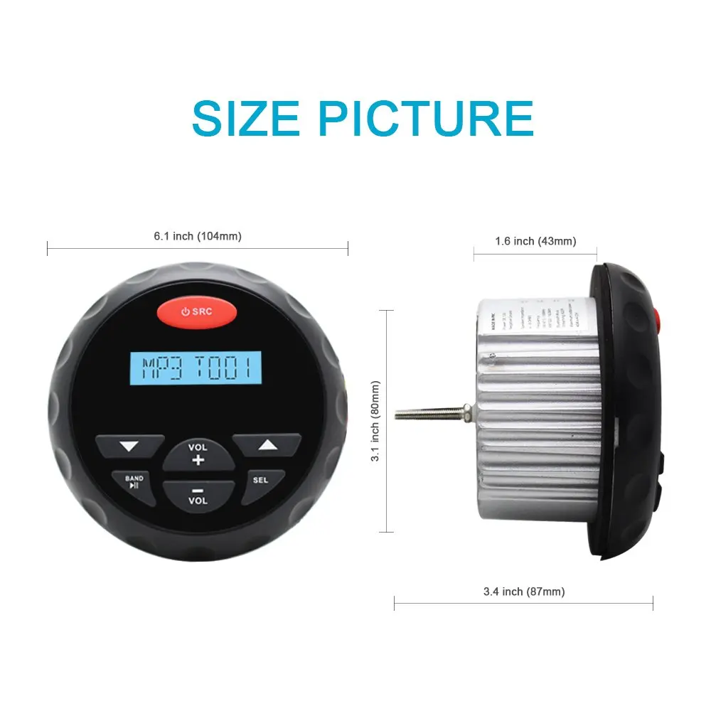 Marine Bluetooth Stereo Boat Radio FM AM MP3 Player Audio Sound System + 3 Inch Marine Waterproof M
